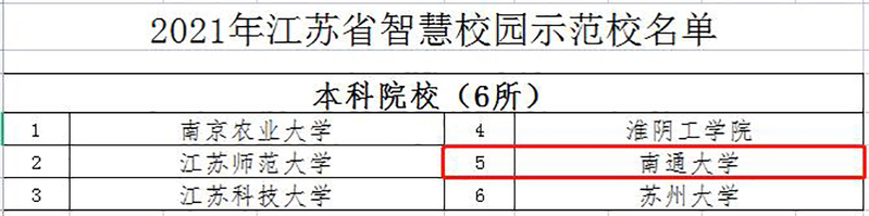 近日,省教育厅、省工业和信息化厅联合发文,公布了2021年江苏省智慧校园及示范校审核认定结果,我校入围“2021年江苏省智慧校园示范校”名单,荣获全省教育信息化领域最高殊荣。