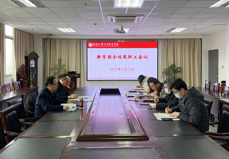 学院党委书记陈燕主持会议。会上,陈燕向学院全体教职工传达了江苏省教育工作会议精神,强调在新的一年,既要“守正”,又要“创新”,坚持“稳”字当头、“进”字为要、“准”字求效,把“高标准建设教育强省”作为奋进方向和工作导向。陈燕提出再认识、再思考、再落实九字要求,强调要以省教育工作会议“稳”、“进”、“准”为工作原则,贯彻落实好学校“两代会”精神,围绕“立德树人”根本任务,围绕岗位职责,围绕学校、学院发展目标,真抓实干,以实际行动献礼南通大学建校110周年,迎接党的二十大胜利召开。