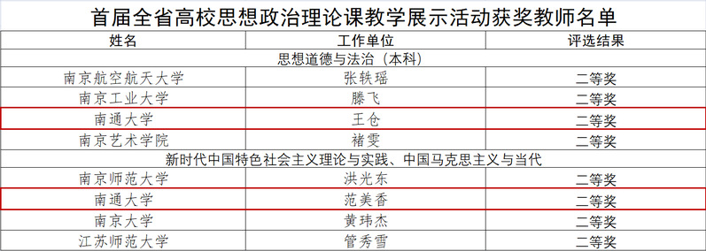 近日,首届全省高校思想政治理论课教学展示活动评选结果公布,我校马克思主义学院教师范美香、王仓分获“新时代中国特色社会主义理论与实践、中国马克思主义与当代”组、 “思想道德与法治(本科)”组二等奖。