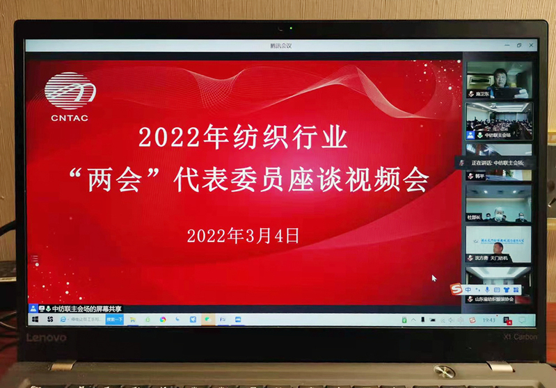 施卫东参加纺织行业“两会”代表委员座谈视频会。