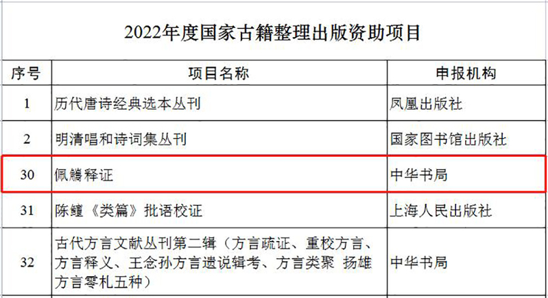 近日,国家新闻出版署全国古籍整理出版规划领导小组办公室正式发文,公布2022年度国家古籍整理出版专项经费资助项目,文学院张学城教授专著《佩觿释证》入选。
