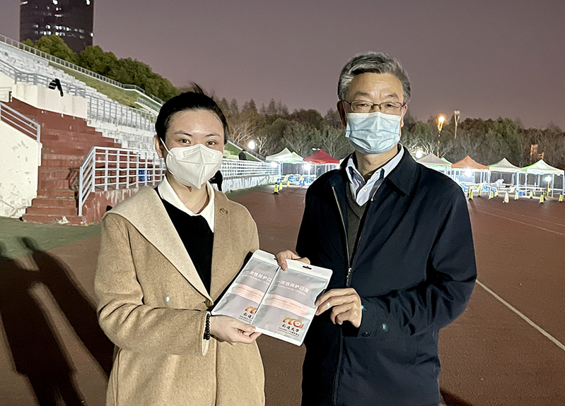 4月6日晚,校党委常委、副校长、新冠肺炎疫情防控常态化工作领导小组常务副组长侯文华前往啬园校区西操场,亲切慰问参加当天核酸检测工作的我校2021届医学院毕业生、南通市如东县人民医院消化内科的吴雅楠。