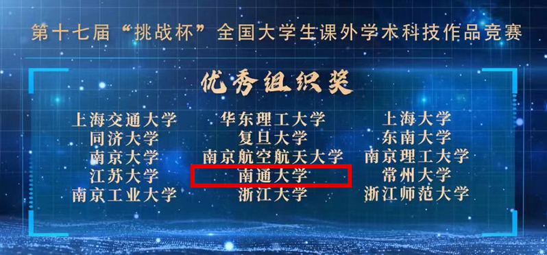4月12日晚,第十七届“挑战杯”全国大学生课外学术科技作品竞赛闭幕式暨“科创先行 强国有我”网络主题活动公布了各类奖项及优秀组织奖名单。我校获评“优秀组织奖”。