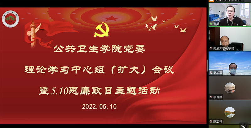 5月10日上午,公共卫生学院党委举办理论学习中心组(扩大)会议暨“5·10”思廉日主题活动。校党委常委、副校长杨宇民进行巡学旁听。