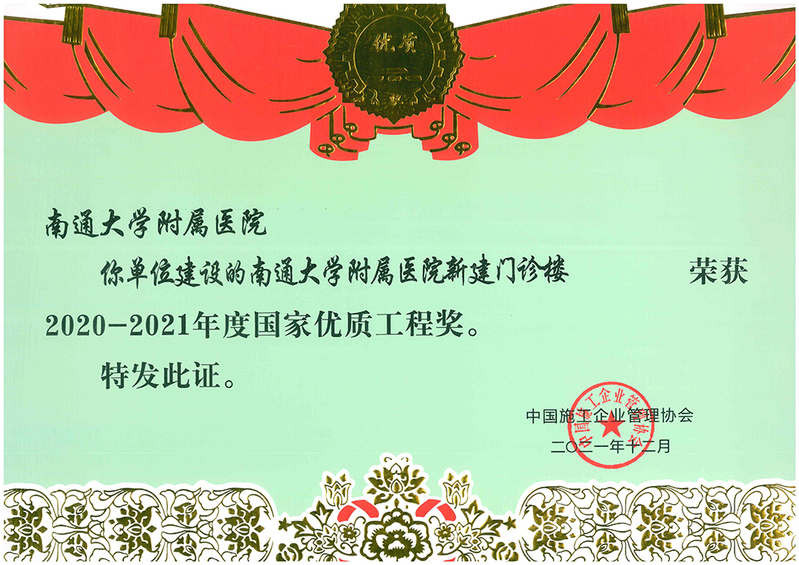 近日,中国施工企业管理协会公布了2020-2021年度国家优质工程奖工程名单,附属医院新建门诊楼工程榜上有名。这是附属医院继2009年综合病房楼获得“鲁班奖”以来,又一次将国家级的殊荣揽入囊中。