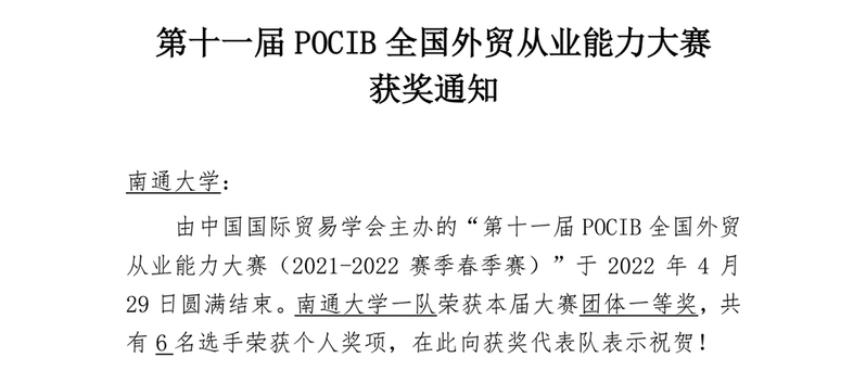 我校在第十一届POCIB全国外贸从业能力大赛中获佳绩。