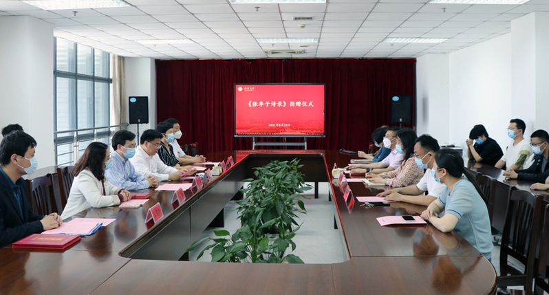 交通与土木工程学院院长施佺主持捐赠仪式。图书馆党总支书记徐宇红向王雪岩颁发荣誉证书。图书馆馆长徐毅代表学校接受捐赠。