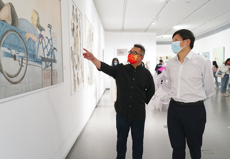 艺术学院相关负责人以及各专业在校师生参加线下开幕式并观展,校外师生通过云展厅线上观展。
