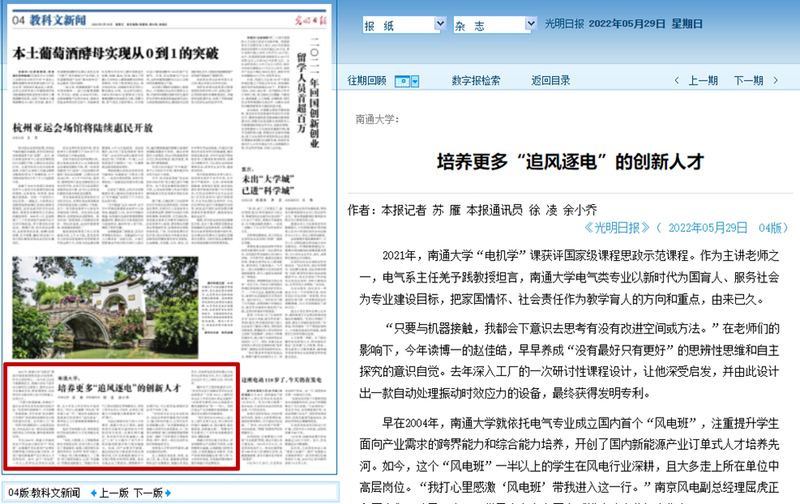 5月29日出版的《光明日报》以《培养更多“追风逐电”的创新人才》为题,关注我校新工科人才培养。