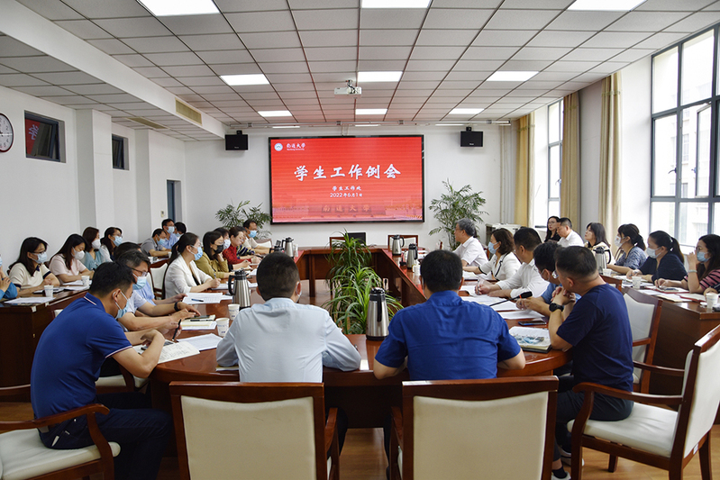 学生工作部部长张雪松主持会议,她分析了招生、就业、考研、学生日常管理、暑期留校等方面工作情况和存在问题,传达了各级有关高校疫情防控及安全稳定工作会议精神,重点就心理健康教育工作进行了部署,强调要加大对学生考试焦虑、情感纠纷、宿舍人际关系不良等高发问题的监管,做好转专业学生的心理工作交接。团委书记陈婷婷围绕“挑战杯”省赛作品推报、基础团务工作、暑期社会实践、校庆汇演后续工作等进行了部署。保卫部、后勤保障部、财务处等部门负责人就相关工作进行了部署。学生工作部副部长王夏强、金翼、徐仁成分别就招生工作、就业工作和近期学生管理工作进行了详细说明。