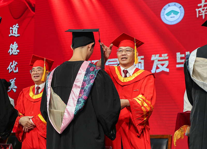 校党委书记浦玉忠为毕业生代表拨穗。