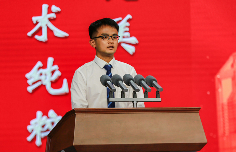 生命科学学院生物技术182班冯志聪作为学生代表发言。他深情回顾了在母校成长的经历,用成功和喜悦表达了对学校、老师和同学的感恩,号召同学们牢记母校“祈通中西,力求精进”的校训精神,努力学习、踏实工作,争取在各自岗位上取得更大成功,不负母校,不负时代,不负韶华,不负党和人民的殷切期望。