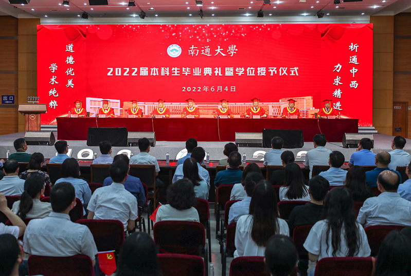 仲夏六月,桃李芬芳。6月4日,我校举行2022届本科生毕业典礼暨学位授予仪式,7023名本科生秉承“祈通中西,力求精进”的校训精神,开启人生新征程。校领导浦玉忠、施卫东、董正超、蒋乃华、樊小东、姜佩剑、顾菊平、侯文华、杨宇民出席典礼,共同为毕业生代表拨穗并颁发毕业证书、学位证书和优秀毕业生荣誉证书。