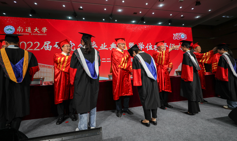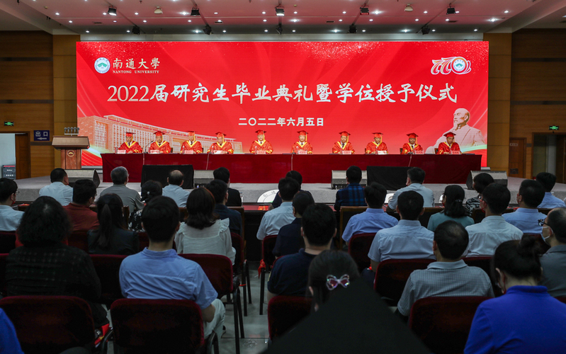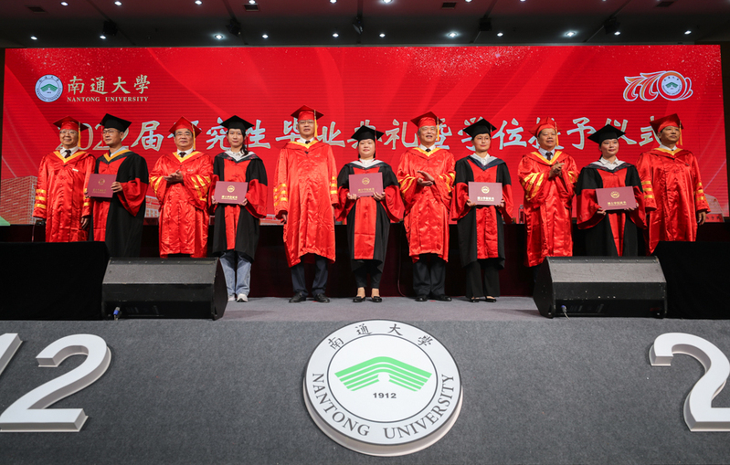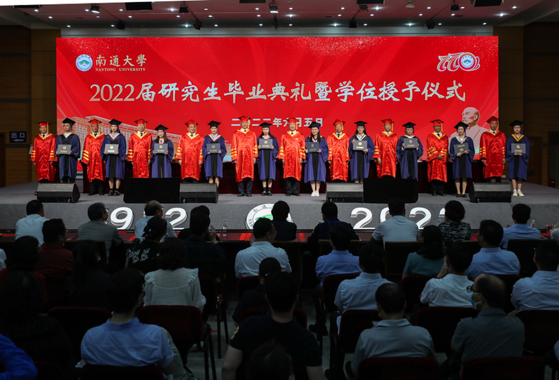 6月5日下午,我校2022届研究生毕业典礼暨学位授予仪式通过线上线下相结合的形式举行。校领导浦玉忠、施卫东、董正超、陆国平、蒋乃华、樊小东、侯文华、杨宇民,校党委常委、组织部长王卫东,校党委常委、宣传部长吉明明出席典礼,共同为毕业研究生正冠拨穗,颁发学位证书和优秀毕业研究生荣誉证书。