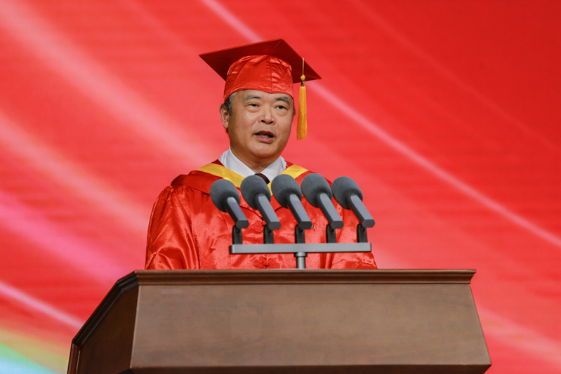 校长施卫东代表学校致辞,对即将告别母校、踏上新的人生征程的2022届全体研究生表示热烈的祝贺,向辛勤培育他们的老师和家长们表示衷心的感谢。施卫东深情寄语研究生,无论走到哪里,只要胸怀踏浪前行的自信,坚定奋楫争先的担当,不畏艰难,不言放弃,定能成为引领时代大潮的栋梁之才。他向毕业生提出三点希望:一要心怀爱国之情,笃行报国之志。青年只有心怀爱国之情,笃行报国之志,才能校准自己的人生坐标。用爱国情怀激荡青春之志,共鸣共情汇聚时代洪流。二是练就过硬本领,养成实干作风。牢固树立“终身学习”的理念,养成“实干担当”的作风,以“功成不必在我”的精神境界和“功成必定有我”的历史担当,专注于做好“一二有用事业”,努力在实践中收获真知,在创新中走向卓越,书写无愧于时代、无愧于人民、无愧于自己的青春华章。三是保持与时俱进,勇于改革创新。希望同学们始终秉承通大人“迎难而上”的勇气,“敢为人先”的锐气,“誓不罢休”的志气,坚守包容互鉴的开阔胸襟,保持勇攀高峰的奋斗姿态,坚持卓越追求与一流要求,拓展开放视野,培育创新精神,提升自信气度,努力成为知识创造和社会进步的引领者。
