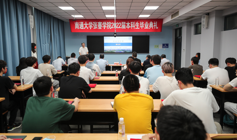 张謇学院副院长傅怀梁主持毕业典礼。研究生院、学生工作处、教务处、团委等部门主要负责人,张謇学院全体教师和2022届全体毕业生出席典礼。