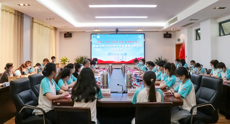 出征仪式上,校团委书记陈婷婷宣读了2022年南通大学暑期社会实践校级立项团队名单,并为校级立项团队代表授旗。校团委副书记王舒雅主持出征仪式,介绍了我校2022年暑期社会实践的前期筹备工作。教育科学学院19级本科生倪佳媛同学代表全体实践团队做出承诺:严格按照要求,认真开展活动;活动中牢固树立安全意识,做好防疫措施;活动后及时总结,巩固实践成果;在实践中接受锻炼,经受考验,展现通大学子风采。“阜”有青春社会实践团指导老师、离退休人员工作处处长邵春明,“科”创中国·“技”往开来——外媒眼中的科技中国调研小分队指导老师、外国语学院副教授沐永华作为指导教师代表发言。他们表示,社会实践是青年学生培养奉献精神、增强服务意识的重要途径,作为指导老师,他们将全程跟进学生的社会实践,尽个人所能为学生排忧解难。