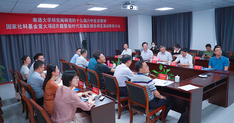 6月18日,我校举行“研究阐释党的十九届六中全会精神”国家社科基金重大项目开题暨新时代实施区域协调发展战略研讨会。校党委书记浦玉忠,省哲学社会科学规划办主任许益军出席会议并致辞。校党委常委、副校长蒋乃华主持仪式。江苏长江经济带研究院院长兼首席专家成长春作开题汇报。