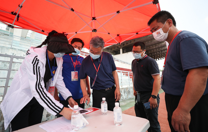 6月20日,我校举行2022年高水平运动队招生田径专项测试,校党委常委、副校长侯文华到测试现场检查工作。