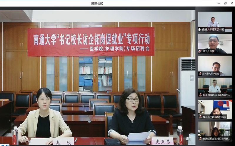 浦玉忠对参加本次云端招聘会的17家医疗单位表示热烈欢迎和衷心感谢。他指出,“书记校长访企拓岗促就业”专项行动是疫情常态化背景下贯彻落实国家和我省关于高校毕业生就业工作的决策部署。各医疗单位尤其是各校友企业长期为我校毕业生提供优质就业岗位,既是以实际行动贯彻落实习近平总书记重要讲话精神和党中央国务院“稳就业”、“保就业”重大决策部署,也是情系通大、心系通大毕业生的务实举措。浦玉忠希望借此机会倾听和了解各单位对我校医学人才培养的意见和建议,进一步加强与用人单位的合作交流,在今后的教育实践中更有针对性的深化教育教学改革、提高人才培养质量。他寄语毕业生们,要把握求职的黄金期、冲刺期,充分展示自己,赢得用人单位的认可;走上工作岗位后,要努力将个人的才能与国家、社会发展融合在一起,将个人的前途命运与单位发展融合在一起,用青春书写时代担当,为“健康中国”战略贡献更多的通医力量。