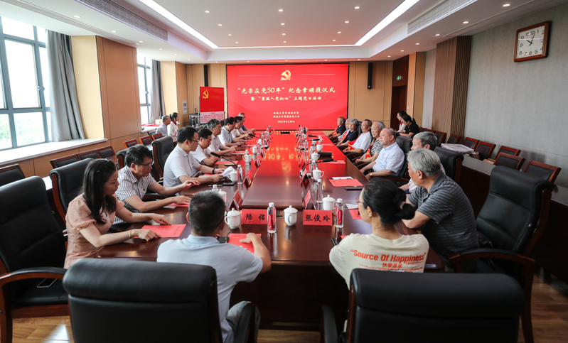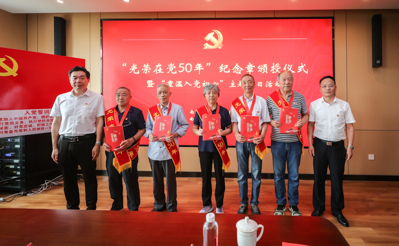 本次活动由党委组织部、离退休党工委联合承办。2022年“光荣在党50年”纪念章获得者代表、2022年荣休党员代表和离退休党工委党员代表参加仪式。