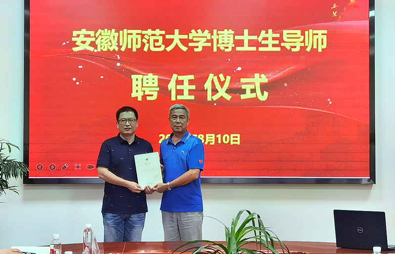 朱家存代表安徽师范大学向我校教育科学学院钱小龙教授颁发博士生导师聘任证书。