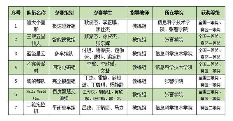 全国大学生智能汽车竞赛是首批入选中国高校学科竞赛排名赛事,是教育部本科教学质量与教学改革工程支持和资助的国家级大学生竞赛项目。本届智能汽车竞赛由中国自动化学会主办,共分为基础四轮、多车编队、节能信标、平衡单车、极速越野、智能视觉、航天智慧物流、百度智慧交通、讯飞家庭服务等组别,吸引了清华大学、哈尔滨工业大学、同济大学、浙江大学、东南大学等500多所高校、3000多支队伍近万名学生参加比赛。参与竞逐总决赛线下赛程的299支队伍,共产生一等奖137支,二等奖141支,三等奖66支。我校组织7支队伍代表学校参赛,其中6支队伍获华东赛区一等奖晋级国赛,分别参加极速越野组、智能视觉组、多车编队组、四轮电磁组、完全模型组、百度智慧交通等6个分项比赛。