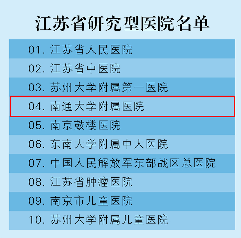 8月31日,江苏省卫生健康委发文公布了“十四五”江苏省研究型医院名单,附属医院作为苏中苏北地区唯一一家医院入选其中,成为全省10家研究型医院之一。此次被认定为江苏省研究型医院,是附属医院今年继荣登全国三级公立医院绩效考核“百强榜”、跻身中国医院科技量值2021年度及五年总榜“双百强”之后,取得的又一重大成果,再次彰显了具有111年历史名院的内涵实力与高质量发展成果。