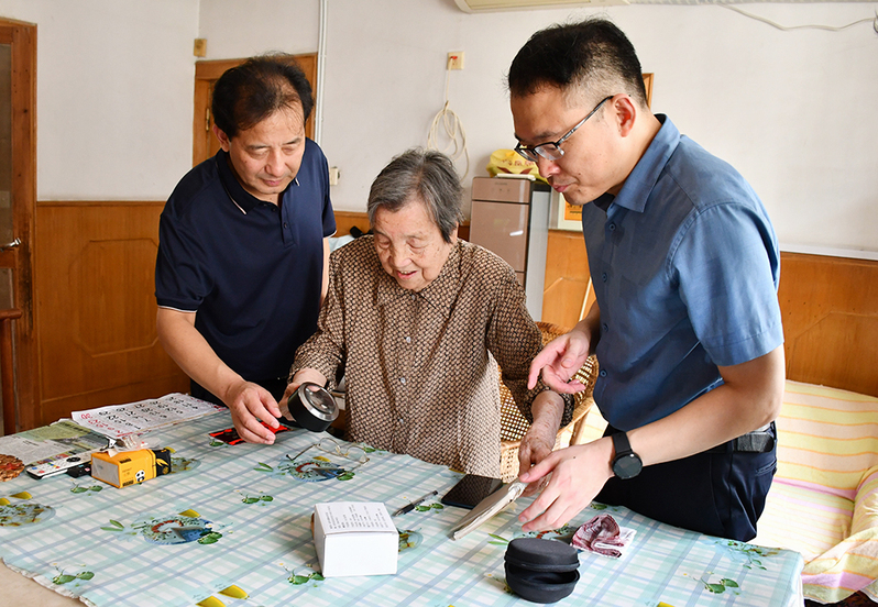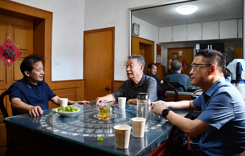 97岁的离休干部许胜有77年党龄,参加过抗日战争、解放战争和抗美援朝战争,离休后用大量精力投入关心下一代事业中,多年来走进多所大中小学校,为青少年学生讲党史进行革命传统教育,受到同学们的热烈欢迎,为培养革命事业接班人做出了重大贡献;不仅如此,许老还善于创作诗词,热情歌颂党和人民取得的伟大成就,歌颂新时代的美好生活,许老本人获评南通市第二届“最美退役军人”。在许老家中,许老拿出最近创作的多首诗歌赠给学校,还介绍了诗歌的创作构思和立意,体现了一个老党员崇高的革命情怀。在蒋明珠、丁品福老师家中,王卫东细致询问了他们的身体健康状况及生活等情况,希望他们注重科学养生,保持乐观心态,把晚年生活过得幸福美满、有滋有味。