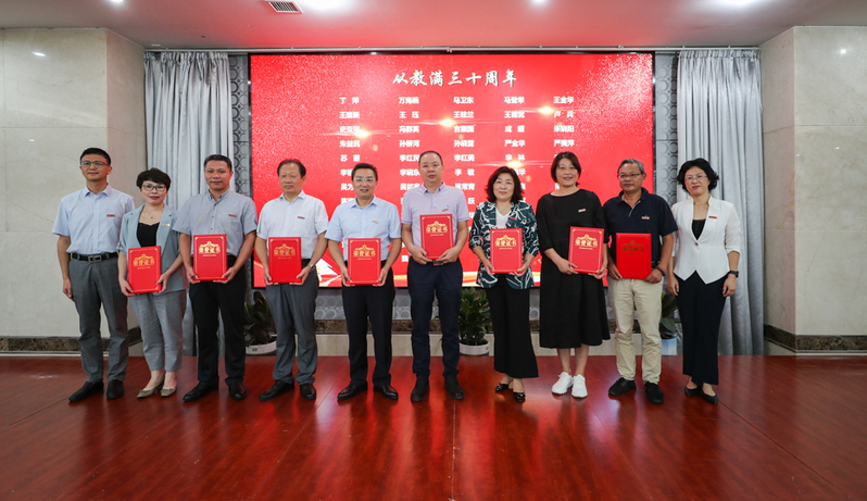 会议表彰了南通大学“中国移动”教学名师、南通大学优秀教育工作者,并为从教满30周年教职工代表颁发纪念证书。