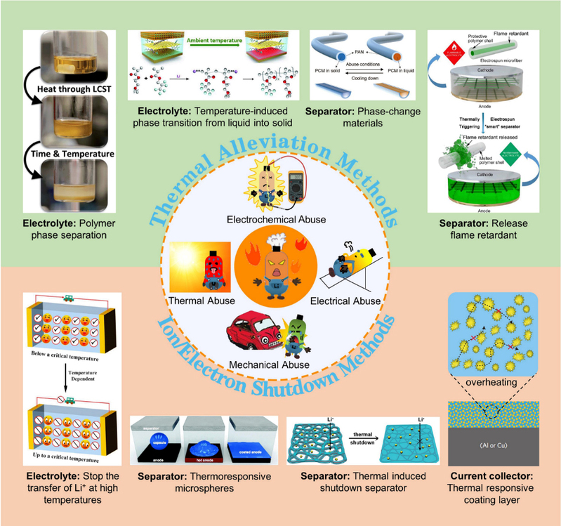 又讯 近日,钱涛教授团队以南通大学为第一单位,在国际著名学术期刊《今日材料》上对提高锂电池热安全性的内部智能热保护方法进行了系统性归纳,提出通过电解质的相分离/转变以及基于相变材料或阻燃剂的温度调节隔膜来缓解热失控问题。为了从根本上解决这一问题,钱涛团队提出可通过开发绝缘离子或电流传输来关闭电池反应,避免持续产生热量并消除可能的热失控,同时从一致性、可逆性与可调性等方面对智能安全锂电池的未来进行了展望,为智能热保护锂电池的合理设计与开发提供了指引。周金秋博士为第一作者。