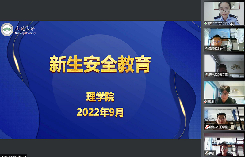为提高新生安全防范意识,9月26日,理学院线上举办2022级新生安全教育讲座,邀请狼山派出所吴宛择警官为新生做防诈骗宣讲。