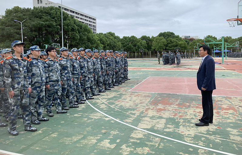 10月6日上午,经济与管理学院党委书记蒋国宏,党委副书记、副院长葛慧敏来到军训场地慰问2022级700余名新生。