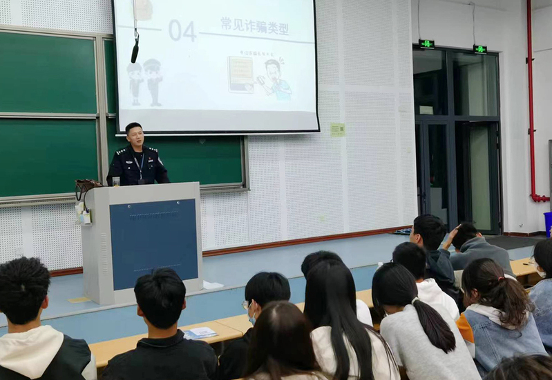 讲座邀请了辖区派出所民警为校区新生们介绍了当前电信诈骗特点,并结合校内真实案例,分析了当前电信网络诈骗被骗对象及其原因,列举了电信网络诈骗八种常见表现形式,并对每种诈骗形式都提出了破解之法。针对如何防范电信诈骗,倡导同学们要“三不一多”,做到不点击非法链接、不轻信他人话语、不透漏个人信息、多核实相关情况,遇到疑似诈骗事件要静一静、等一等、想一想、问一问,指导新生如何使用国家反诈中心APP。