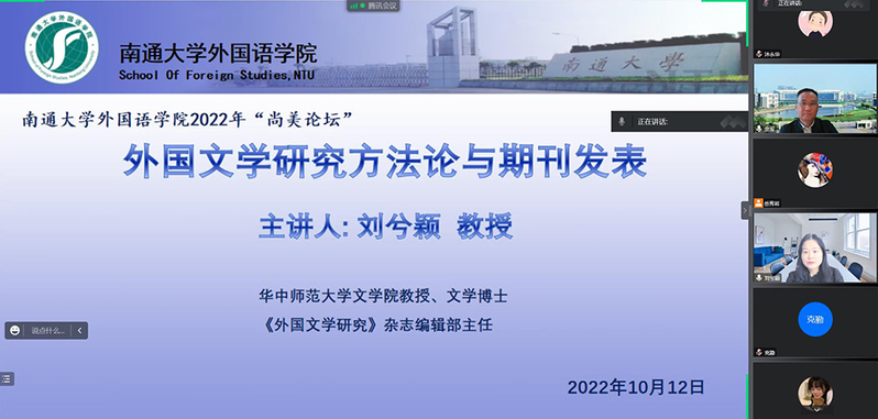 10月12日下午,华中师范大学文学院教授、《外国文学研究》杂志编辑部主任刘兮颖应邀做客外国语学院“尚美论坛”,以“外国文学研究方法论与期刊发表”为题做专题讲座。