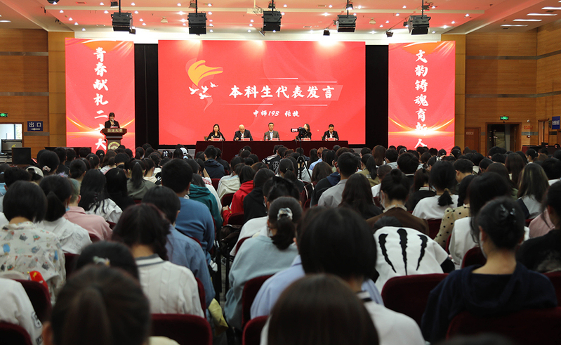 老生代表、中师193班张捷同学分享了自身在大学期间的学习态度、时间规划、能力提升等方面的心得和秘诀,鼓励学弟学妹们要保持“真诚”、做时间的主人、尝试跳出舒适圈,助力自己快速成长。
