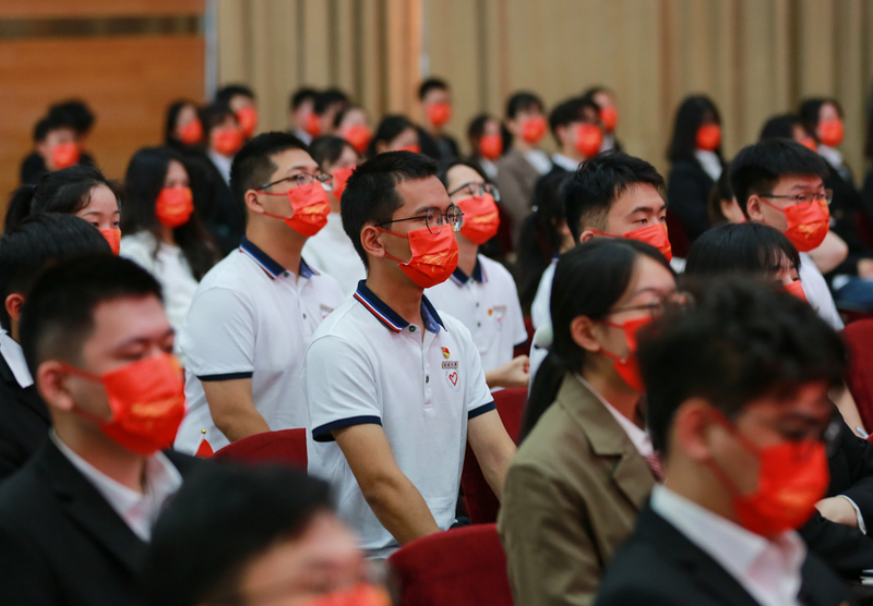 学生代表集中收看党的二十大开幕会。