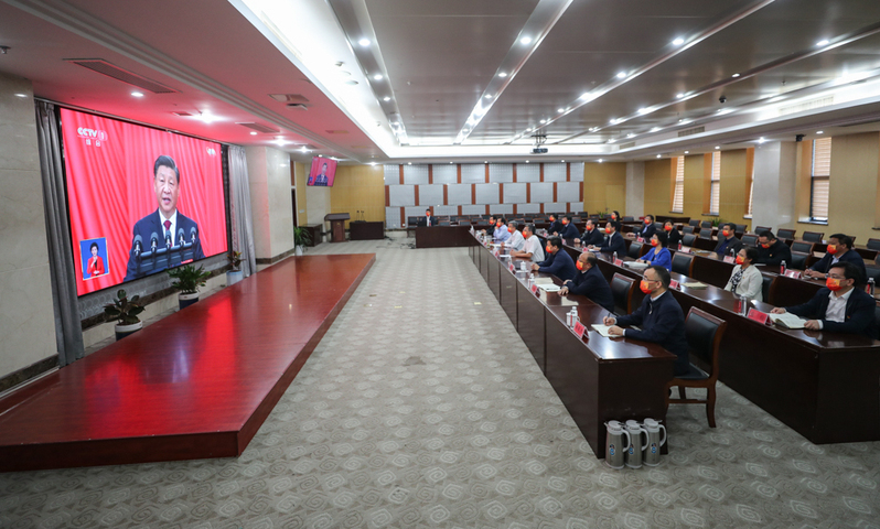 我校党委理论学习中心组集中收看党的二十大开幕会。