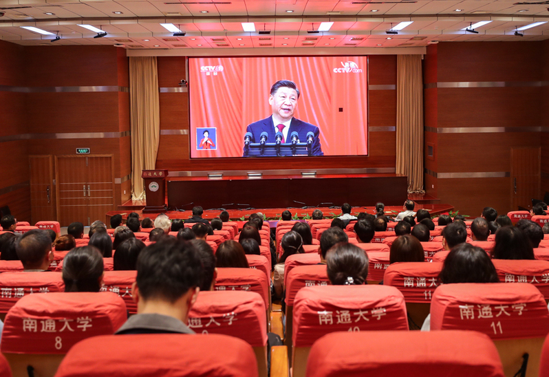 金秋十月,丹桂飘香。10月16日上午,举国关注、举世瞩目的中国共产党第二十次全国代表大会在北京人民大会堂隆重开幕。在这万众期待的时刻,通大校园处处洋溢着热烈氛围,全校师生精神昂扬、欢欣鼓舞,喜迎党的二十大胜利召开。我校师生分别聚集在四个校区的会议室、教室、宿舍内,集中收看党的二十大开幕会直播盛况,聆听总书记报告、热议祖国未来、激发报国情怀。