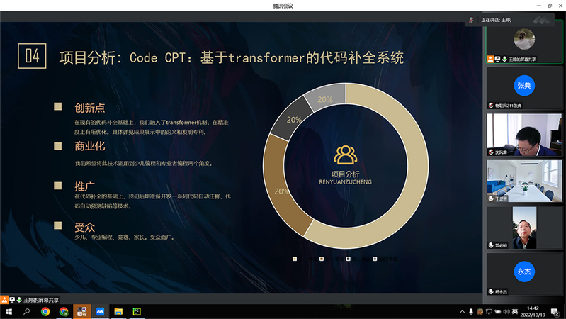 本次辅导会采用线下汇报、线上评审的方式进行。会上,五组学生重点培育项目负责人围绕项目基本情况、项目核心优势等分别进行10分钟路演汇报。评委们根据赛事评审规则,从项目背景、痛点分析、技术难点、产品介绍、商业模式及团队建设等不同层面作出分析指导。“互联网+”国评委、我校经济与管理学院教师沈风雷作总结点评,并从商业计划书的撰写、路演PPT的美化、学生路演答辩技巧等方面为参赛项目做精彩辅导。