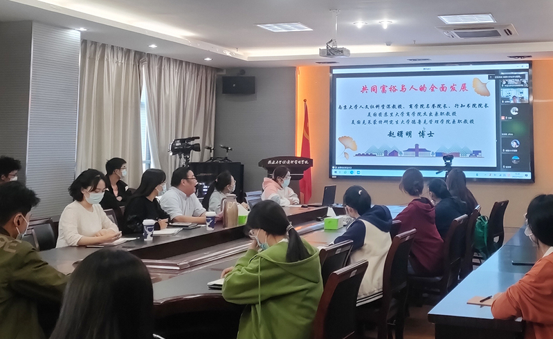 10月23日下午,南京大学商学院名誉院长赵曙明教授应邀做客经管高层论坛,以“共同富裕与人的全面发展”为题在线上做专题讲座。论坛由经济与管理学院院长姜朝晖主持。