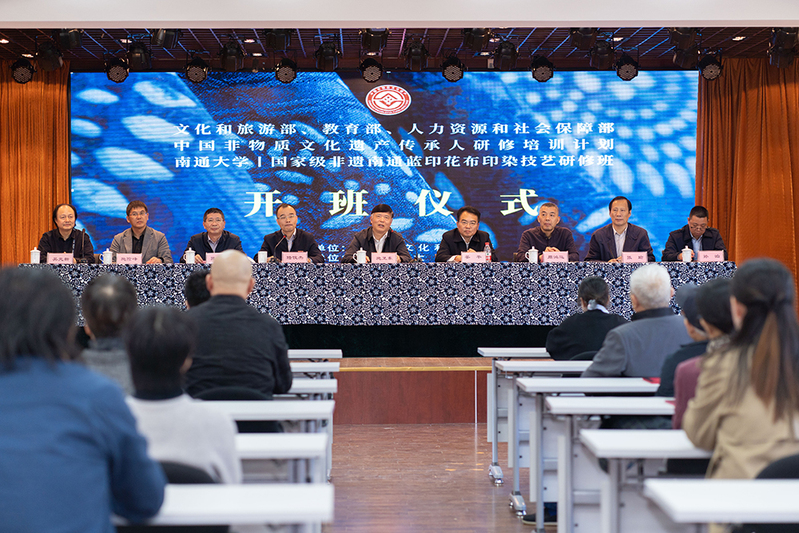 10月25日,我校举办的“2022年中国非物质文化遗产传承人研修培训计划——国家级非遗南通蓝印花布印染技艺研修班”开班仪式在南通市文联文艺之家举行。校长施卫东,校党委常委、副校长陆俊杰,江苏省文旅厅非遗处处长宋莉莉,南通市文联党组书记、主席姜平等出席开班仪式。