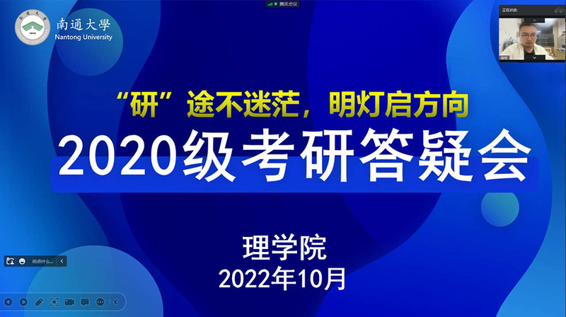 为进一步提高学院人才培养质量,提升考研热情和信心,10月26日,理学院线上举办“‘研’途不迷茫,明灯启方向”2020级考研答疑会。