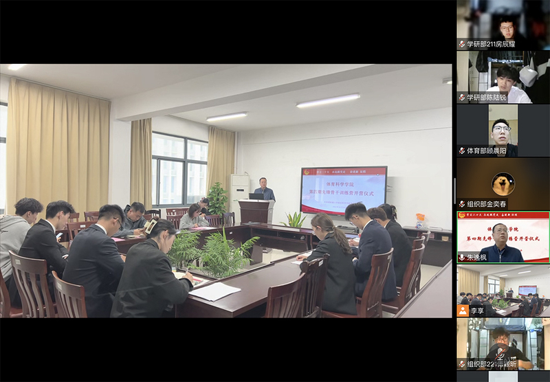 10月26日下午,体育科学学院举行第四期先锋骨干训练营开营仪式。学院党委副书记、副院长许慈晖对先锋骨干训练营全体新学员提出殷切希望。他希望同学们要认真学习贯彻党的二十大精神,提高政治判断力、政治领悟力、政治执行力;学习掌握管理工作方法,提高服务、协调、指导和管理工作能力水平;在体言体,在体强体,勇当标兵,在学习和工作中发挥先锋模范作用;发扬奉献、传承、团结、斗争精神,传递正能量,弘扬主旋律,提高学院的美誉度、知名度、影响力,为学院高质量发展贡献力量。