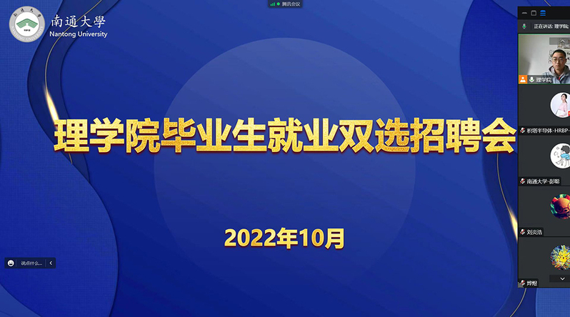 10月28日,理学院线上举办毕业生就业双选招聘会。上海积塔半导体有限公司、无锡亮源激光技术有限公司、立讯精密工业股份有限公司等3家招聘单位应邀参会。