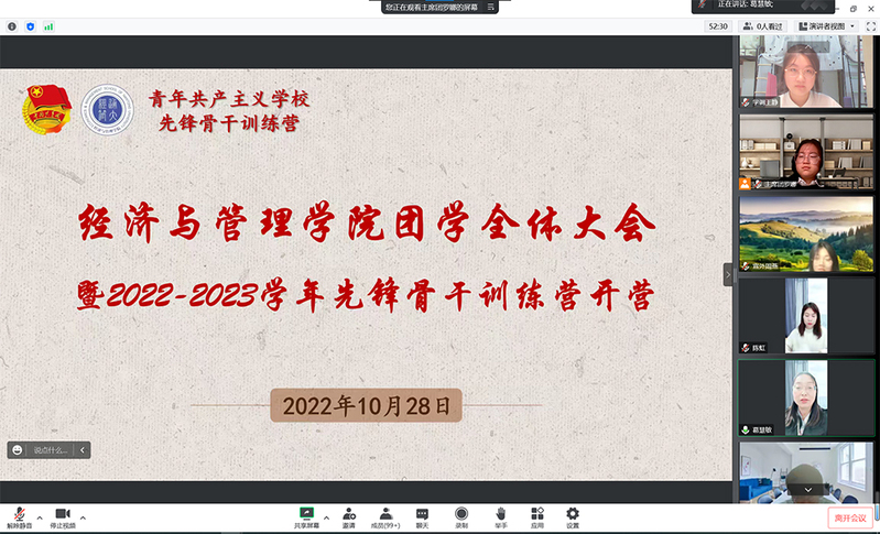 10月28日晚,经济与管理学院召开团学全体大会暨2022-2023学年先锋骨干训练营开营仪式。