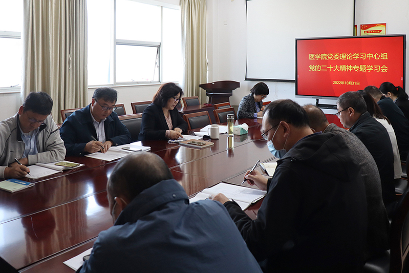 10月31日上午,医学院党委召开理论学习中心组会议,专题学习贯彻党的二十大精神。