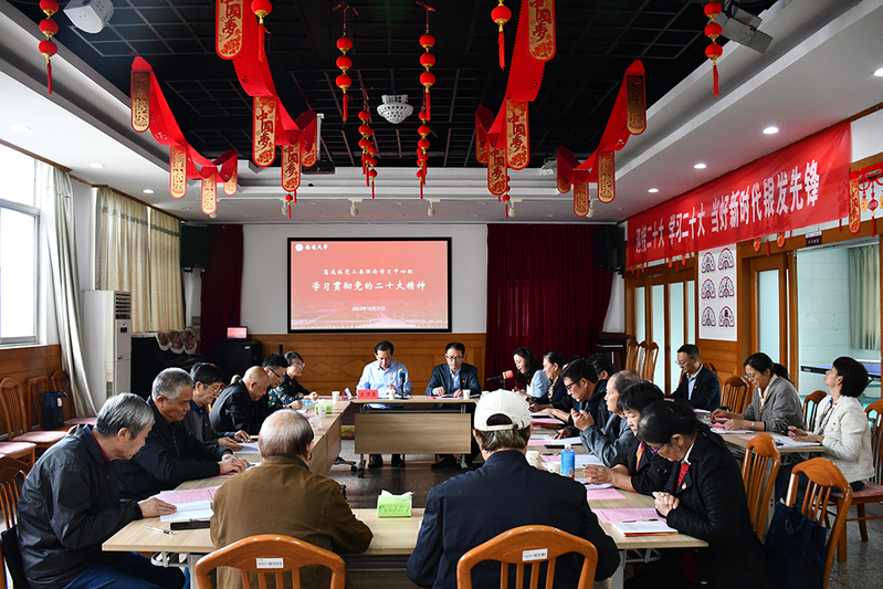 10月31日下午,离退休党工委理论学习中心组召开专题学习会,学习贯彻党的二十大精神,交流学习心得体会。校党委常委、副校长王卫东进行巡学旁听。校关心下一代工作委员会常务副主任、原南通工学院党委副书记、纪委书记金城出席会议。
