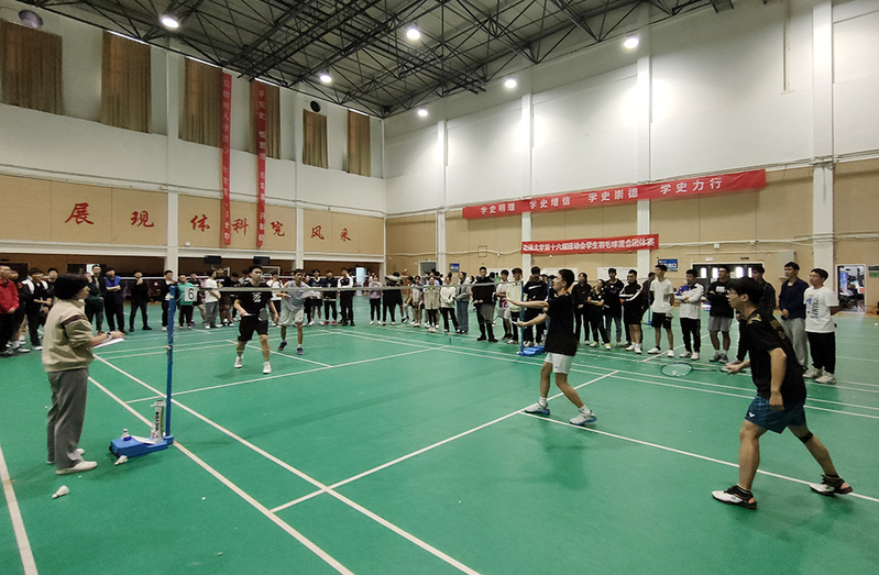 我校举办第十六届运动会学生羽毛球混合团体赛。