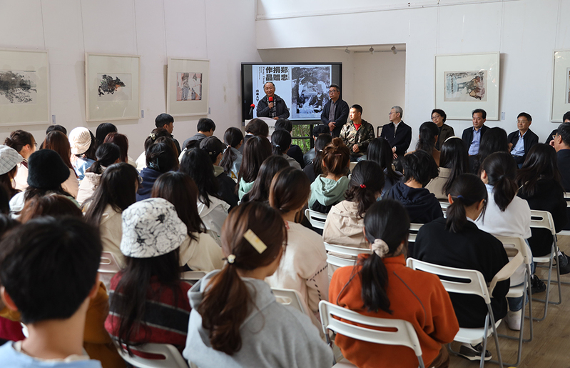 开幕式上,王卫东代表学校向郑忠颁发捐赠证书,并高度赞扬其心系母校师生、助力母校发展的高尚情怀。学校教学督导顾森毅回忆了郑忠在校期间的学习生活情况。郑忠表示有机会将作品捐献给母校,既是母校“祈通中西、力求精进”的校训精神指引,也是一名学子深爱母校、眷恋母校的款款深情。